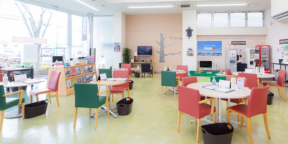 明るく居心地の良い雰囲気のショールームとなっております。ご来店の際は、フリードリンクをご利用いただき、ごゆっくりお寛ぎください。お困りの事がございましたら、お近くのスタッフまでお申しつけください。