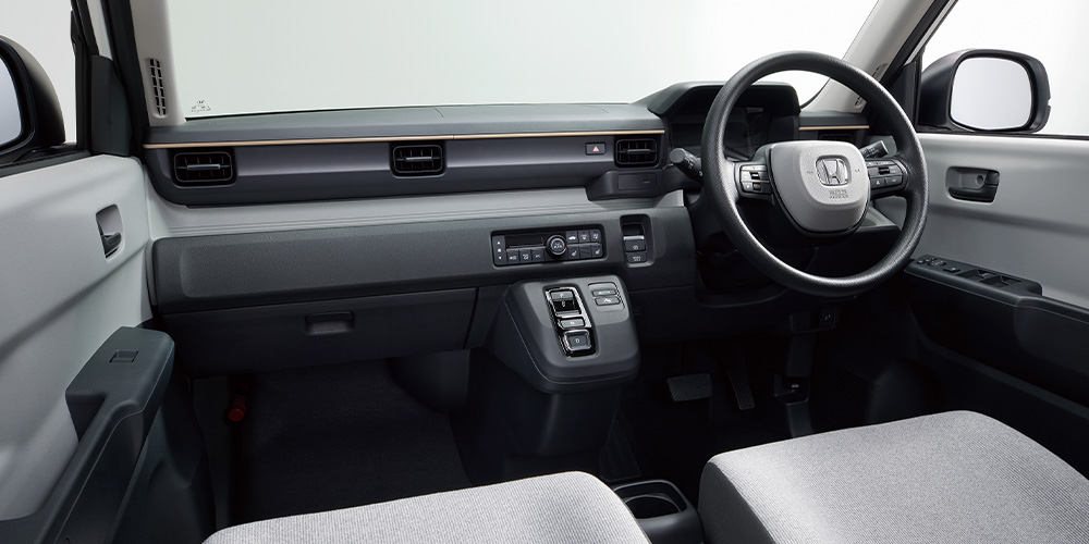 <中央>N-ONE e: L 車両本体価格(消費税10%込み) 3,198,800円★ 価格には写真の有料色の価格は含まれておりません。 ボディーカラーはチアフルグリーン(有料色:33,000円高)■カットボディーによる撮影。■メーター類は撮影のため点灯。■画面はハメコミ合成。