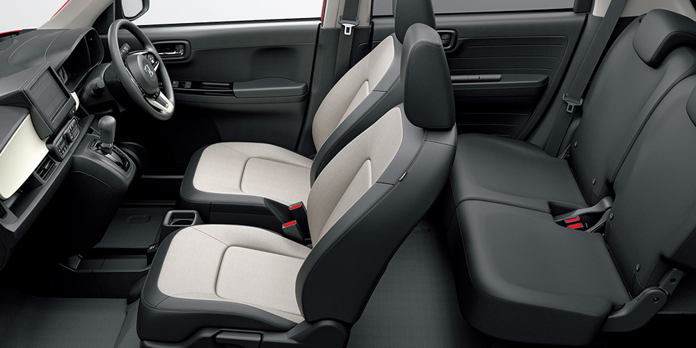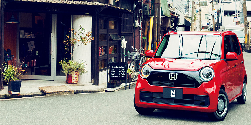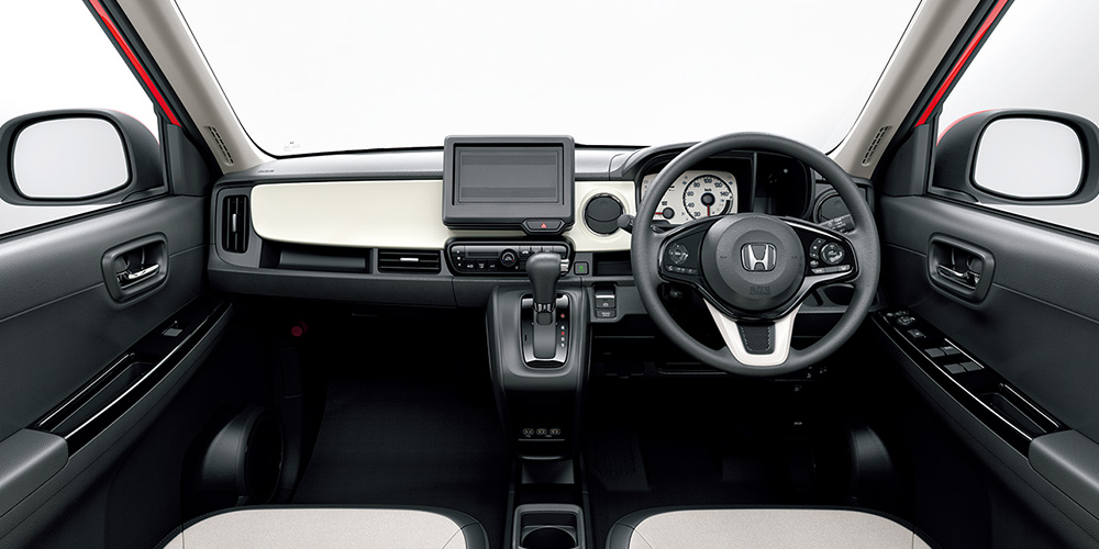 下段:<左>N-ONE Original(FF) 車両本体価格(消費税10%込み)1,734,700円★ 価格には写真のディーラーオプションの価格は含まれておりません。 ボディーカラーはフレームレッド ディーラーオプション(オーディオホールリッド:料金及び取付工賃別途)装着車 ■写真はカットボディーによる撮影。