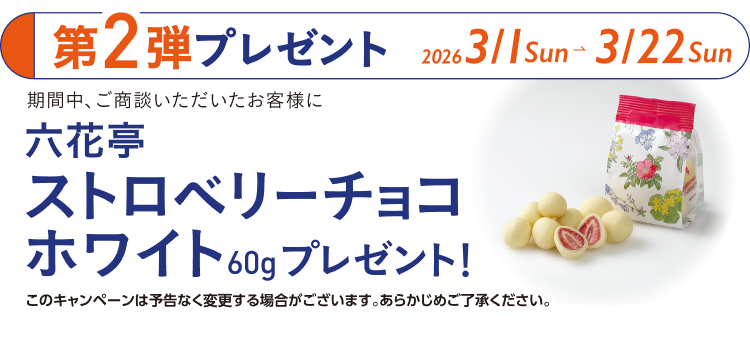 【六花亭ストロベリーチョコホワイト60gプレゼントについて】●ホンダモビリティ近畿で新車をご商談いただいた方が対象となります。 ●画像はイメージです。実物とは異なる場合がございます。 ●プレゼントは一組様おひとつとさせていただきます。●プレゼントの数には限りがございますので、品切れの際はご容赦ください。 ●他のキャンペーンと併用できない場合がございます。 ●詳しくは営業スタッフまでお問い合わせください。