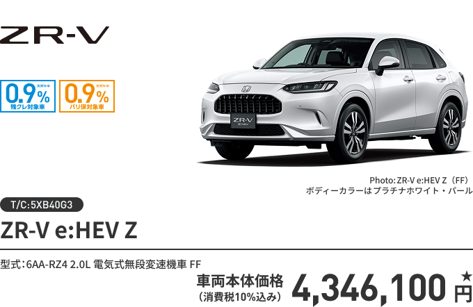 ZR-V e:HEV Z(FF)ボディーカラー/有料色 メーカーオプションなし